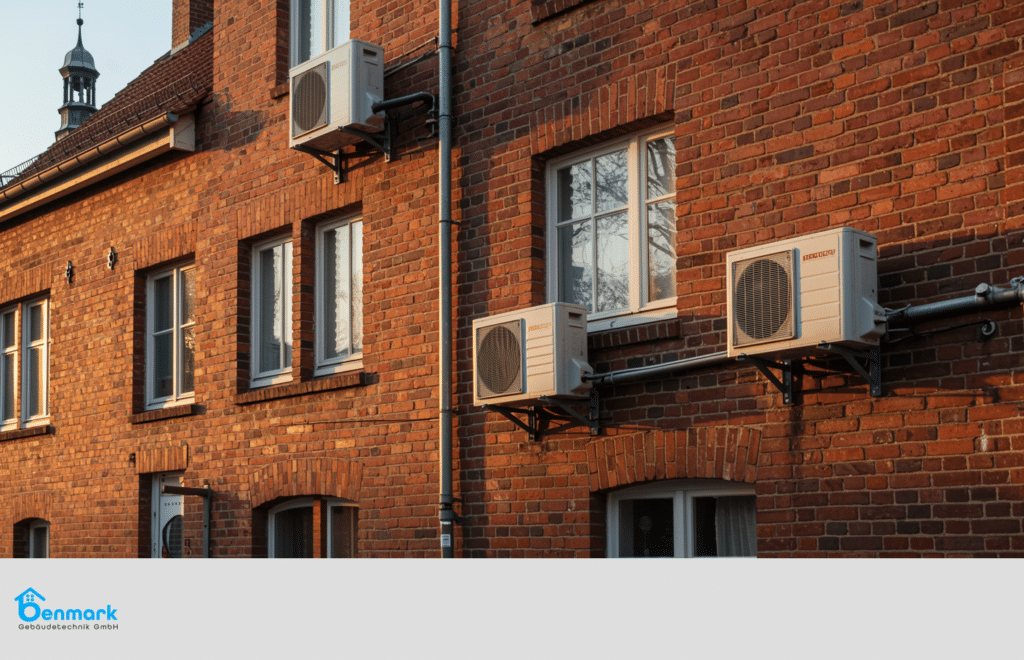 Altbaucharme und moderne Effizienz – genau das wollten Eigentümer eines Klinker-Reihenhauses in Donnerschwee vereinen. Als benmark Gebäudetechnik GmbH planen, installieren und warten wir Wärmepumpen- und Klimasysteme in Oldenburg und Umgebung. In dieser Fallstudie zeigen wir, wie wir einen Altbau verlässlich auf Wärmepumpe umgestellt haben – ohne Fußbodenheizung, mit spürbarem Komfortgewinn, leisem Betrieb und transparenter Effizienz.